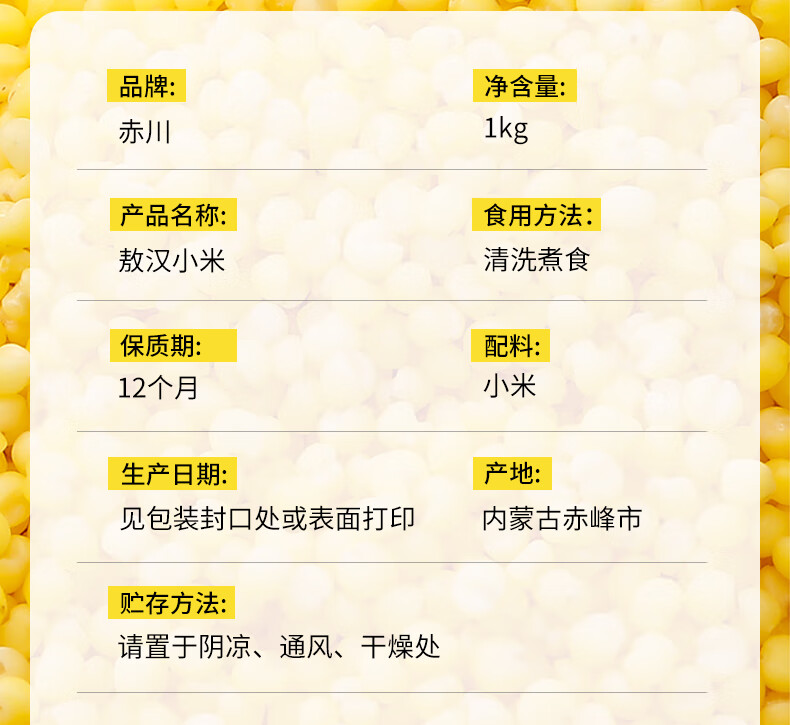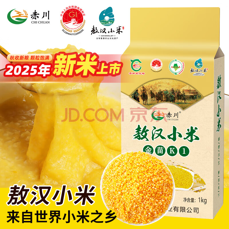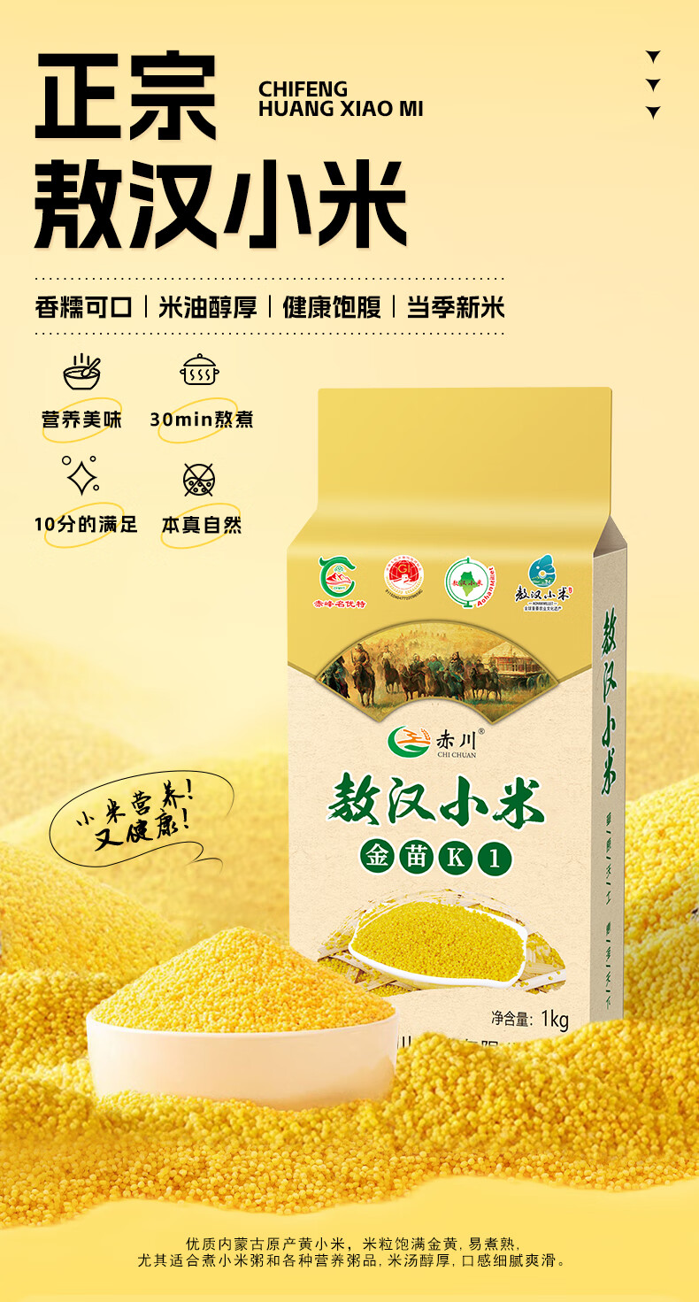 赤川敖汉小米2斤25年新米金苗K1 真空装黄小米五谷杂粮粗粮小米粥