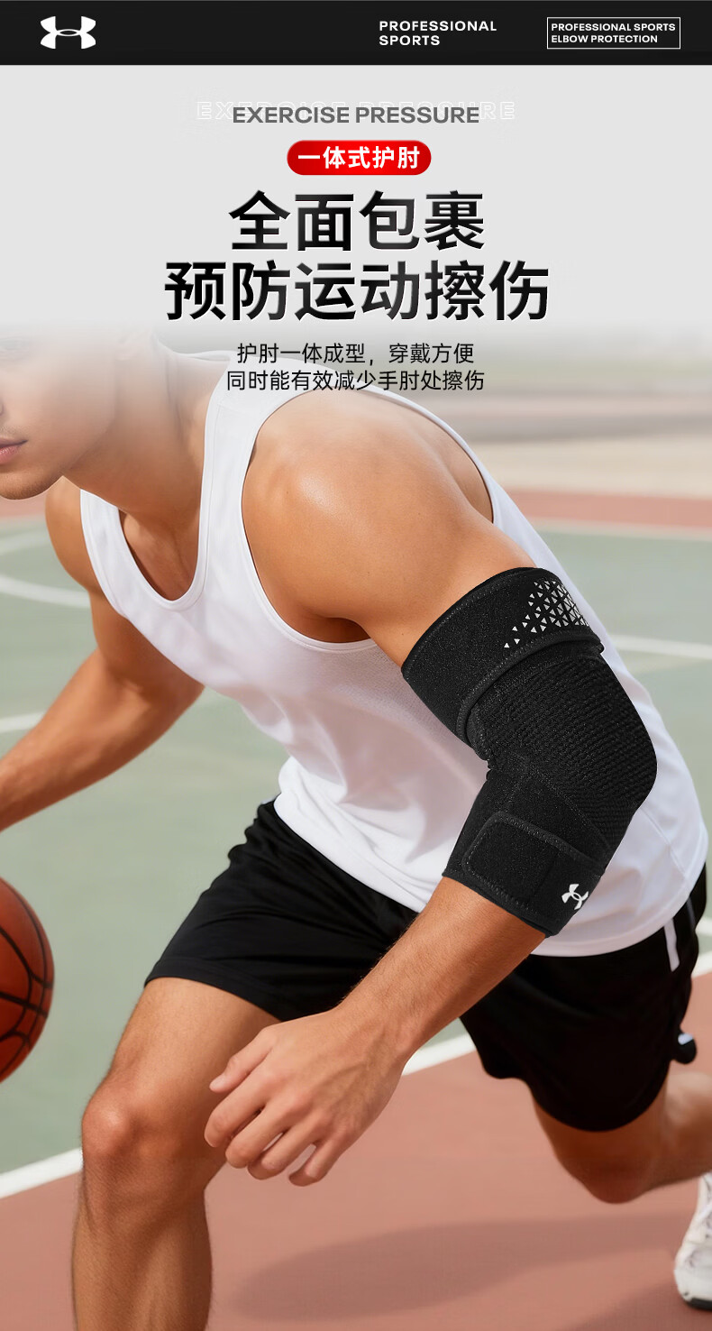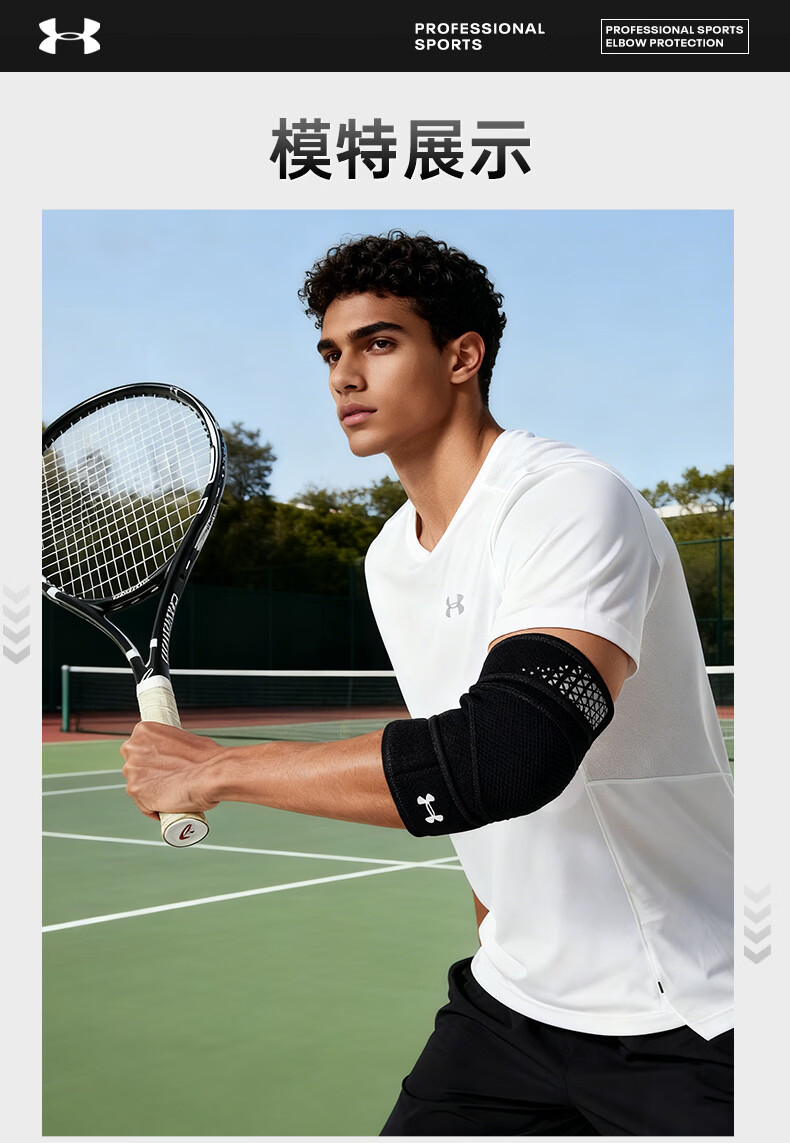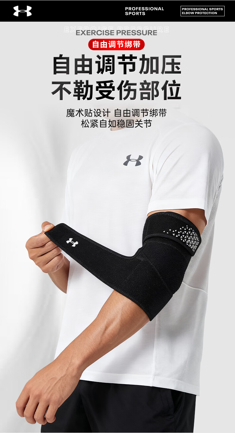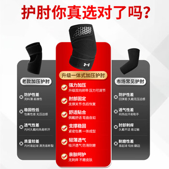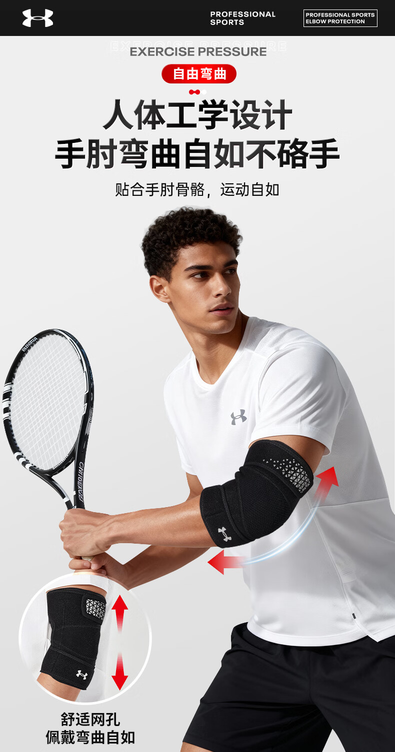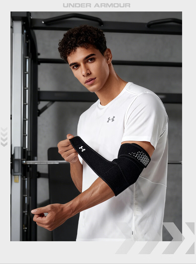 安德玛(Under Armour)护肘关节保护套网球肘保暖护套健身运动护具卧推加压蓝羽排球护臂