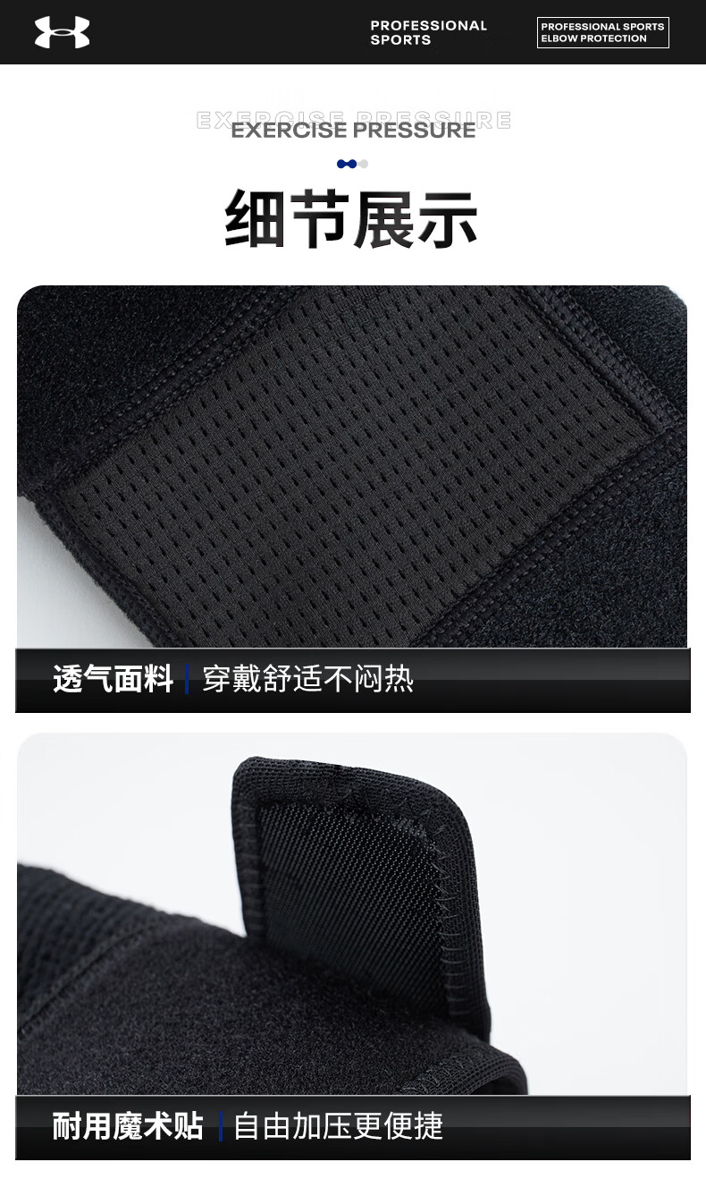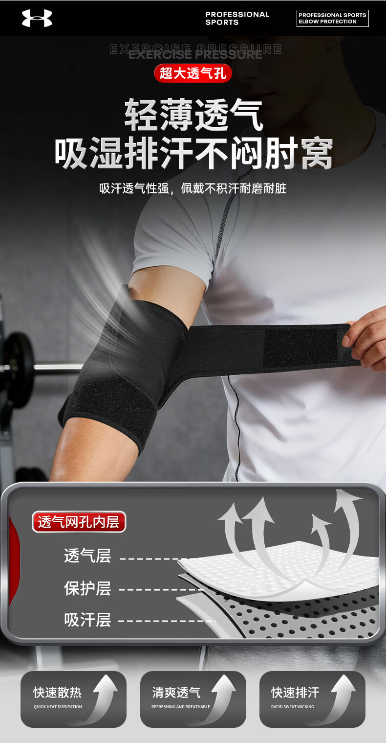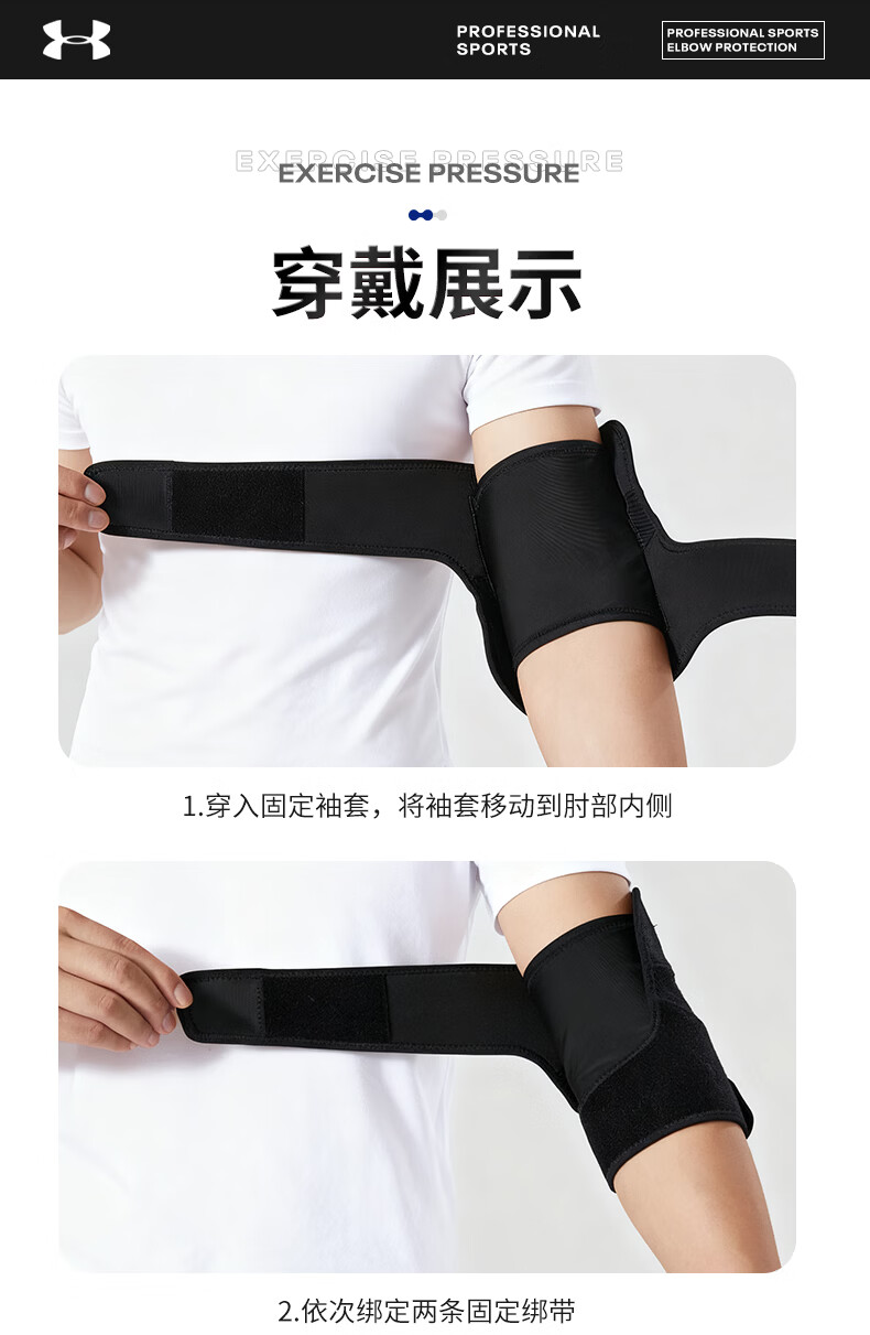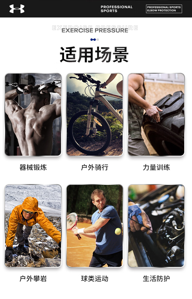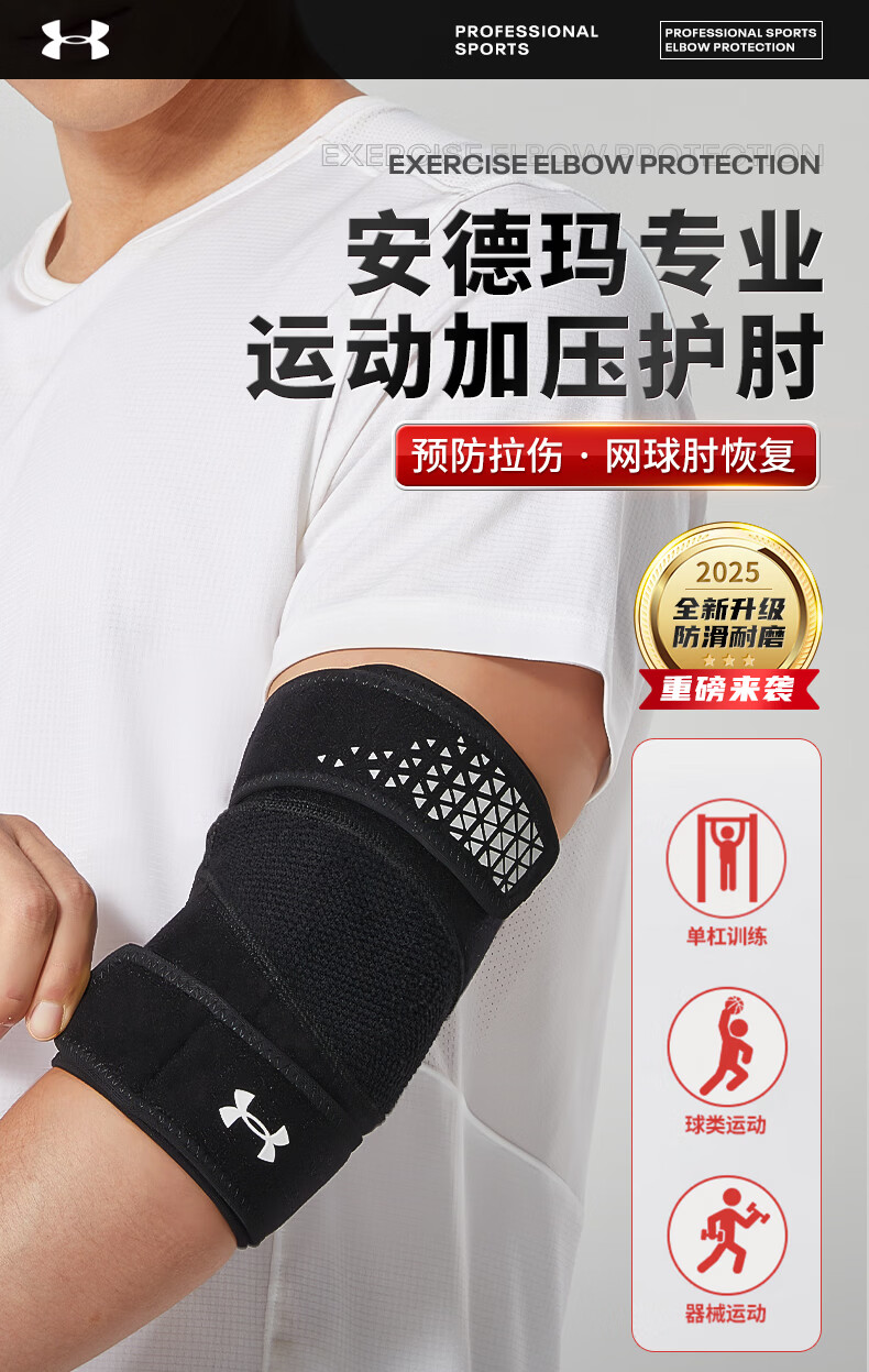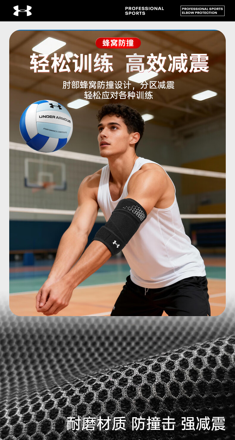 安德玛(Under Armour)护肘关节保护套网球肘保暖护套健身运动护具卧推加压蓝羽排球护臂
