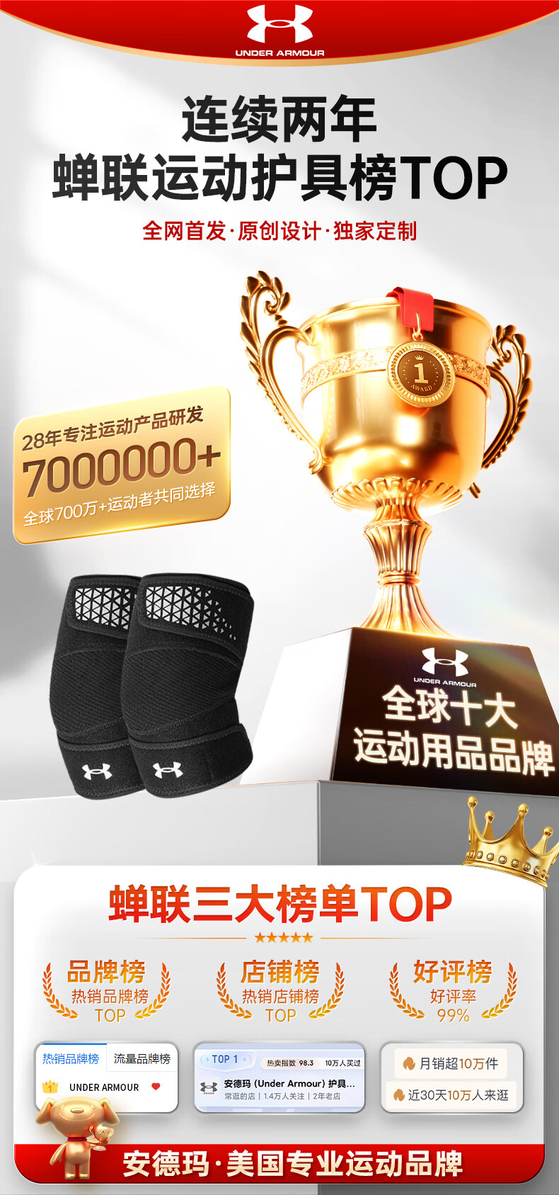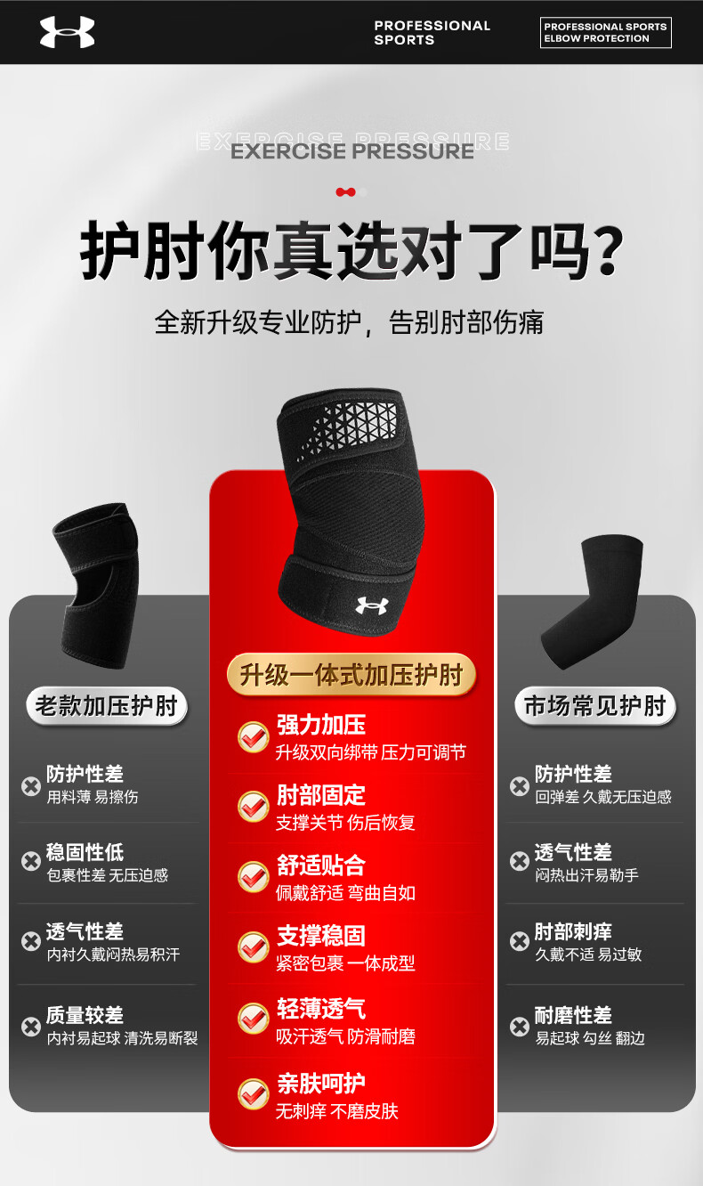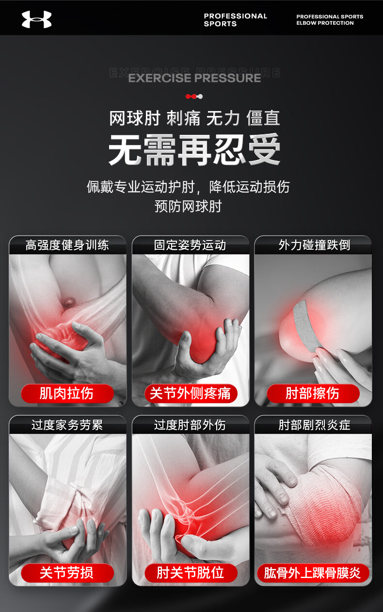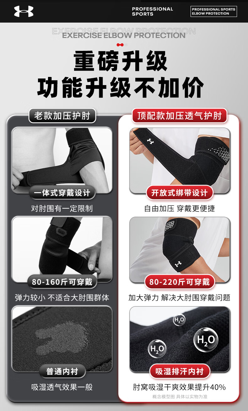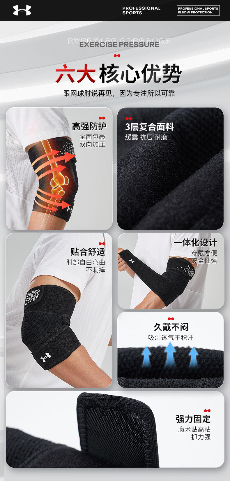 安德玛(Under Armour)护肘关节保护套网球肘保暖护套健身运动护具卧推加压蓝羽排球护臂