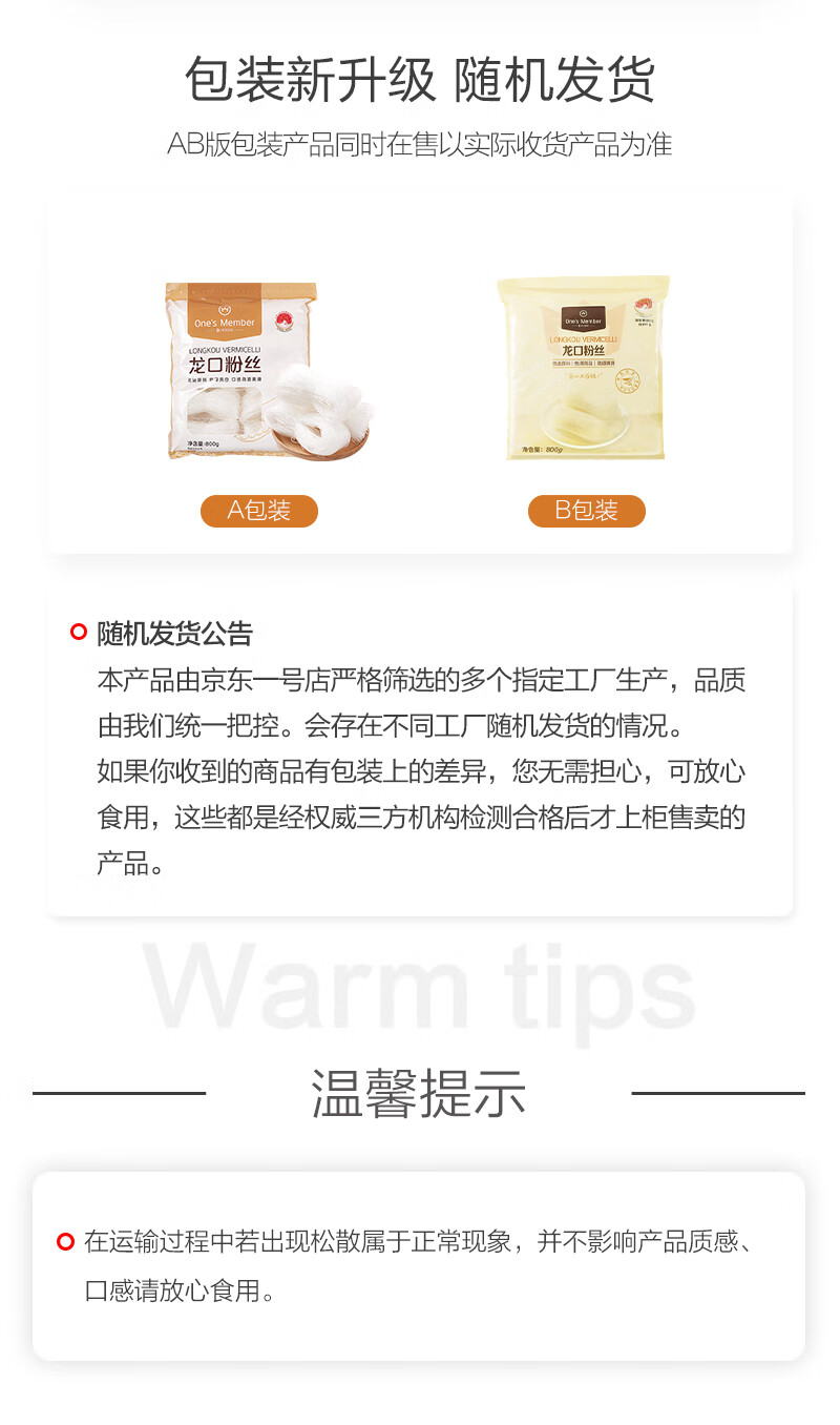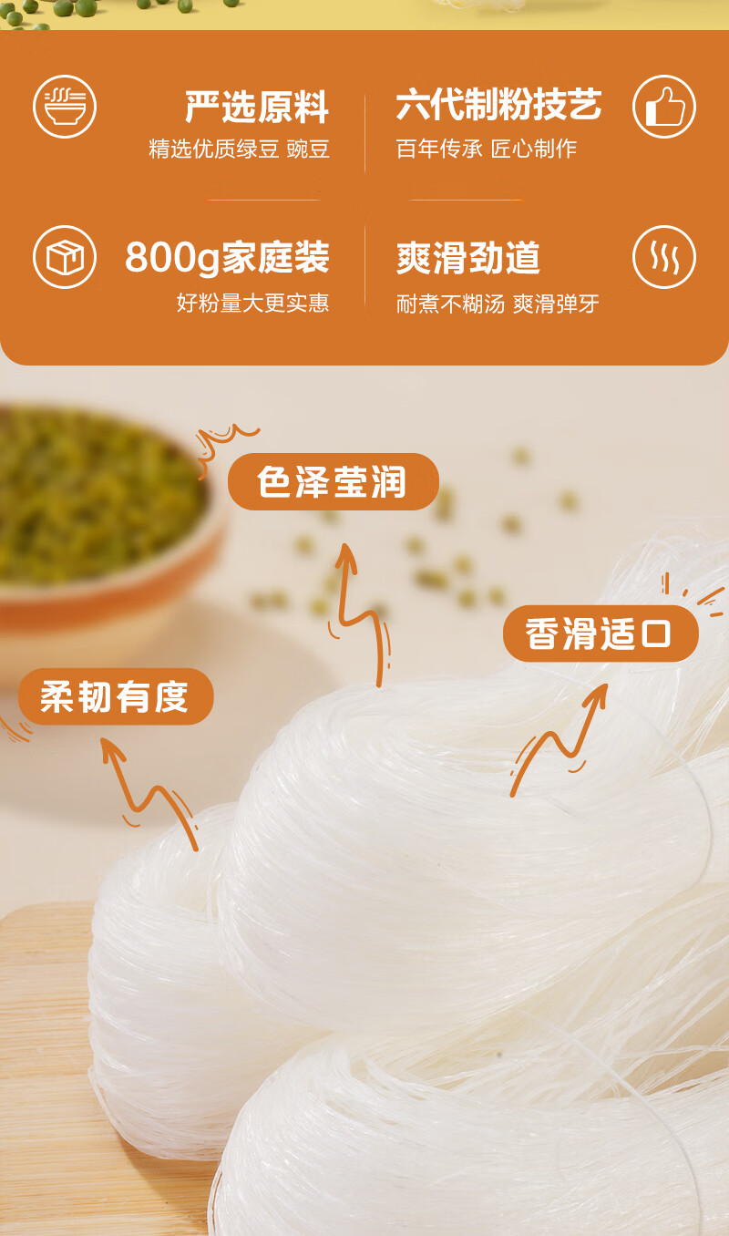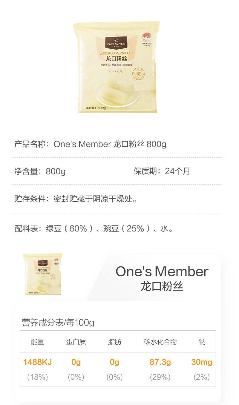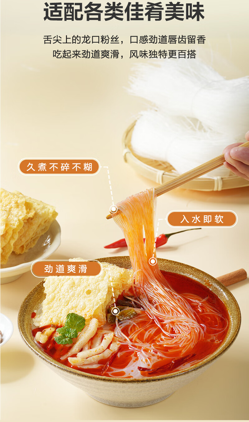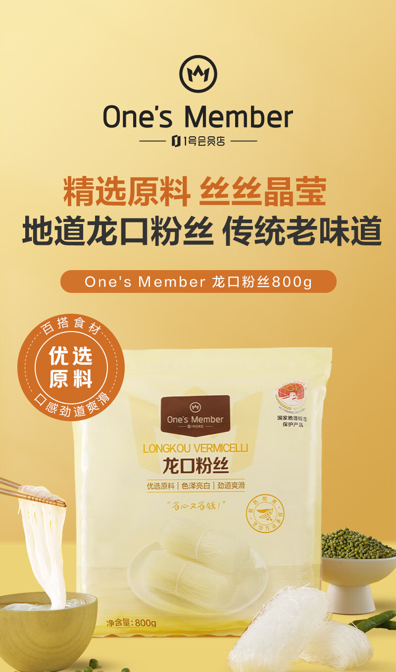1号会员店龙口粉丝800g 粉条无添加火锅食材凉拌水晶粉鸭血烧烤南北干货