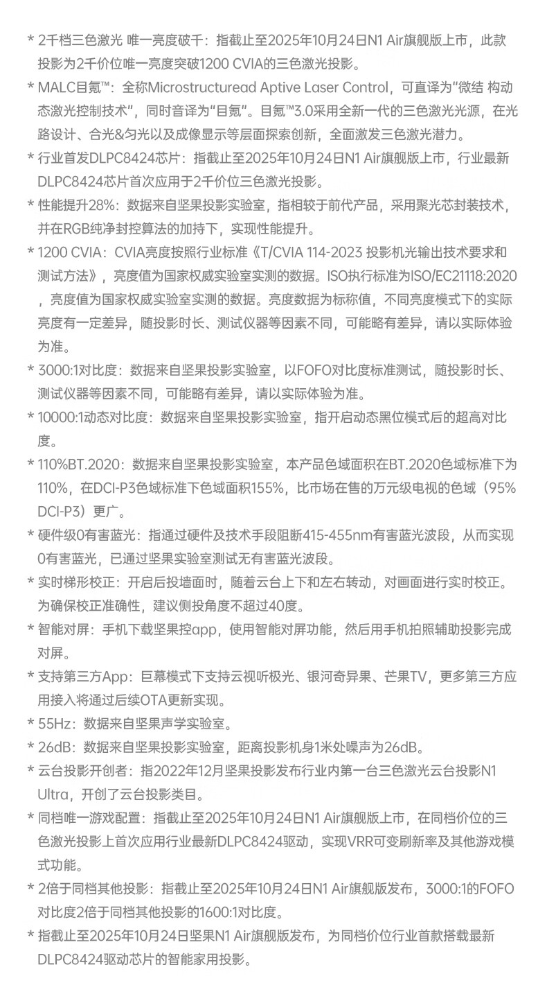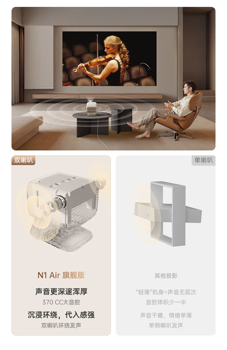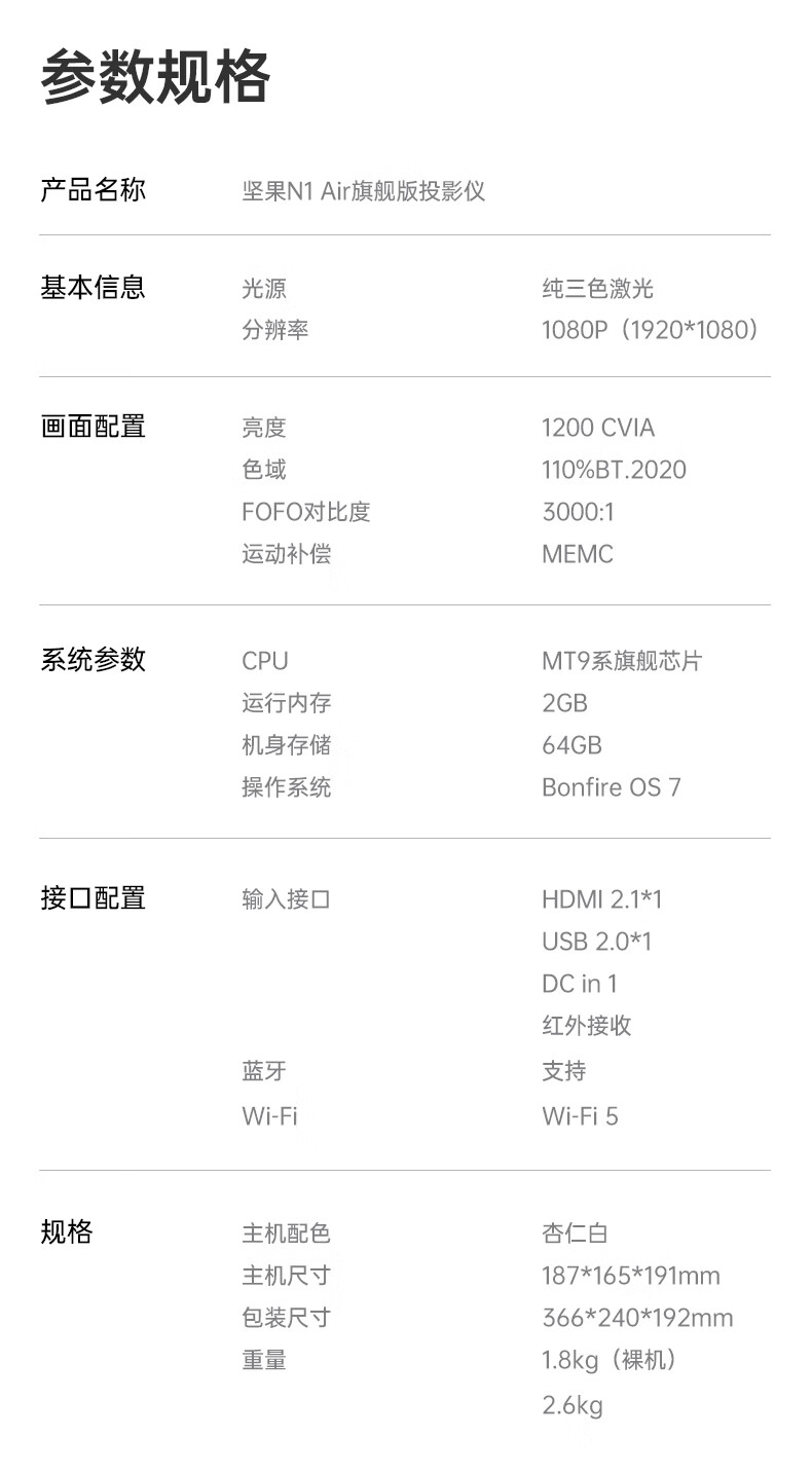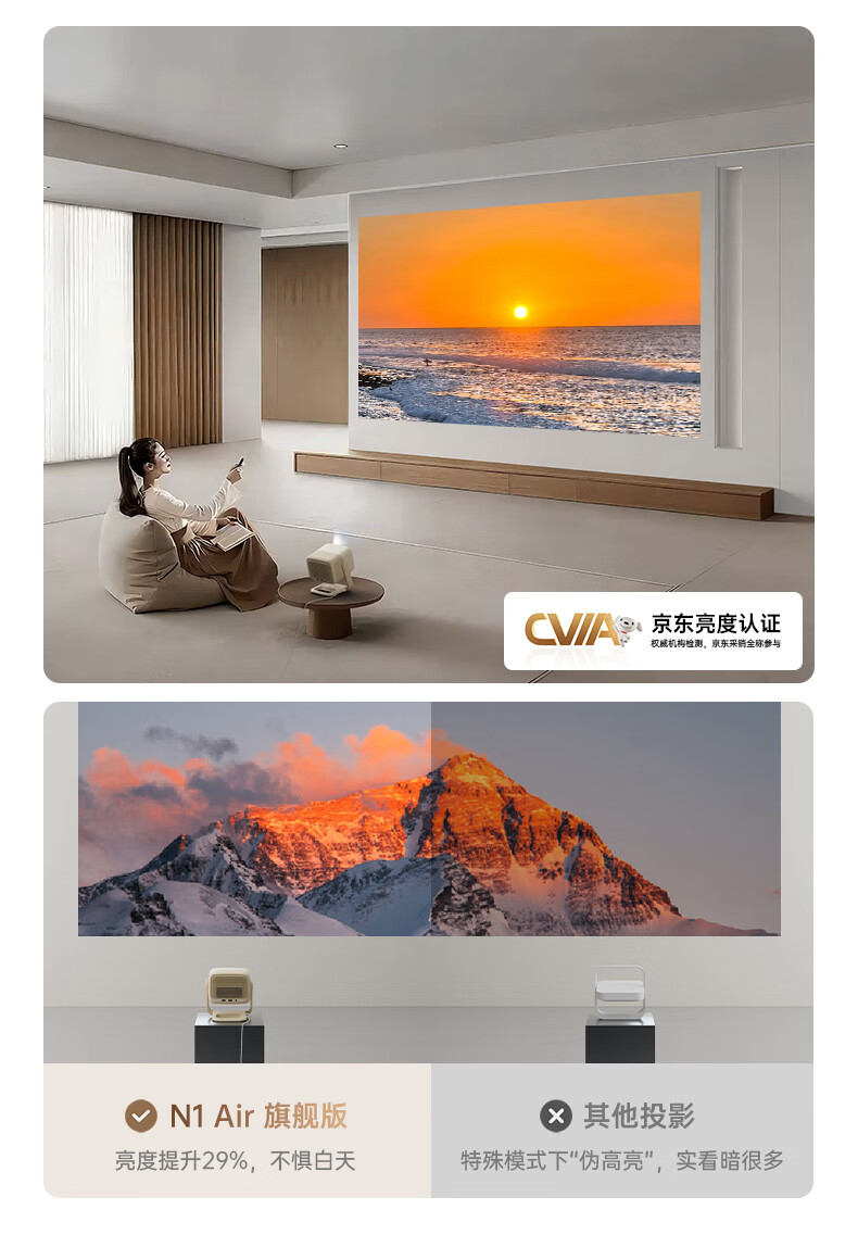坚果投影(JMGO)N1 Air旗舰版 投影仪家用 纯三色激光高