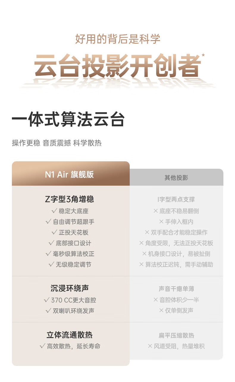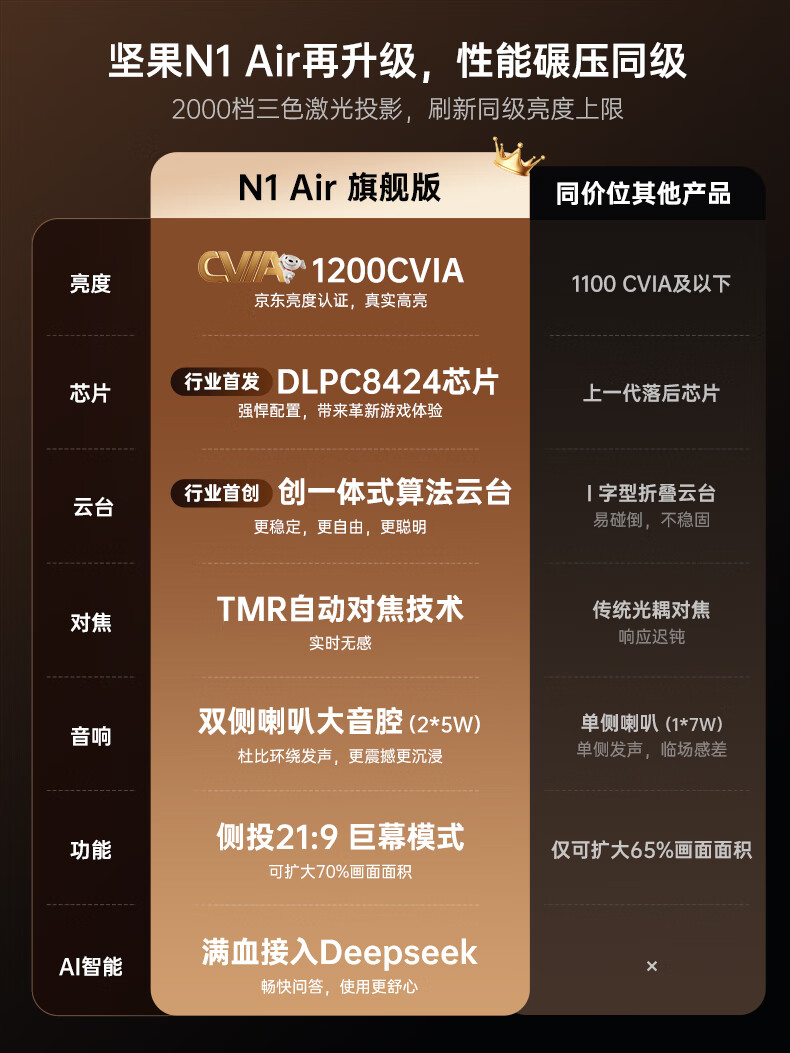 坚果投影(JMGO)N1 Air旗舰版 投影仪家用 纯三色激光高清家庭影院云台投影机(1200CVIA)38节礼物送女友
