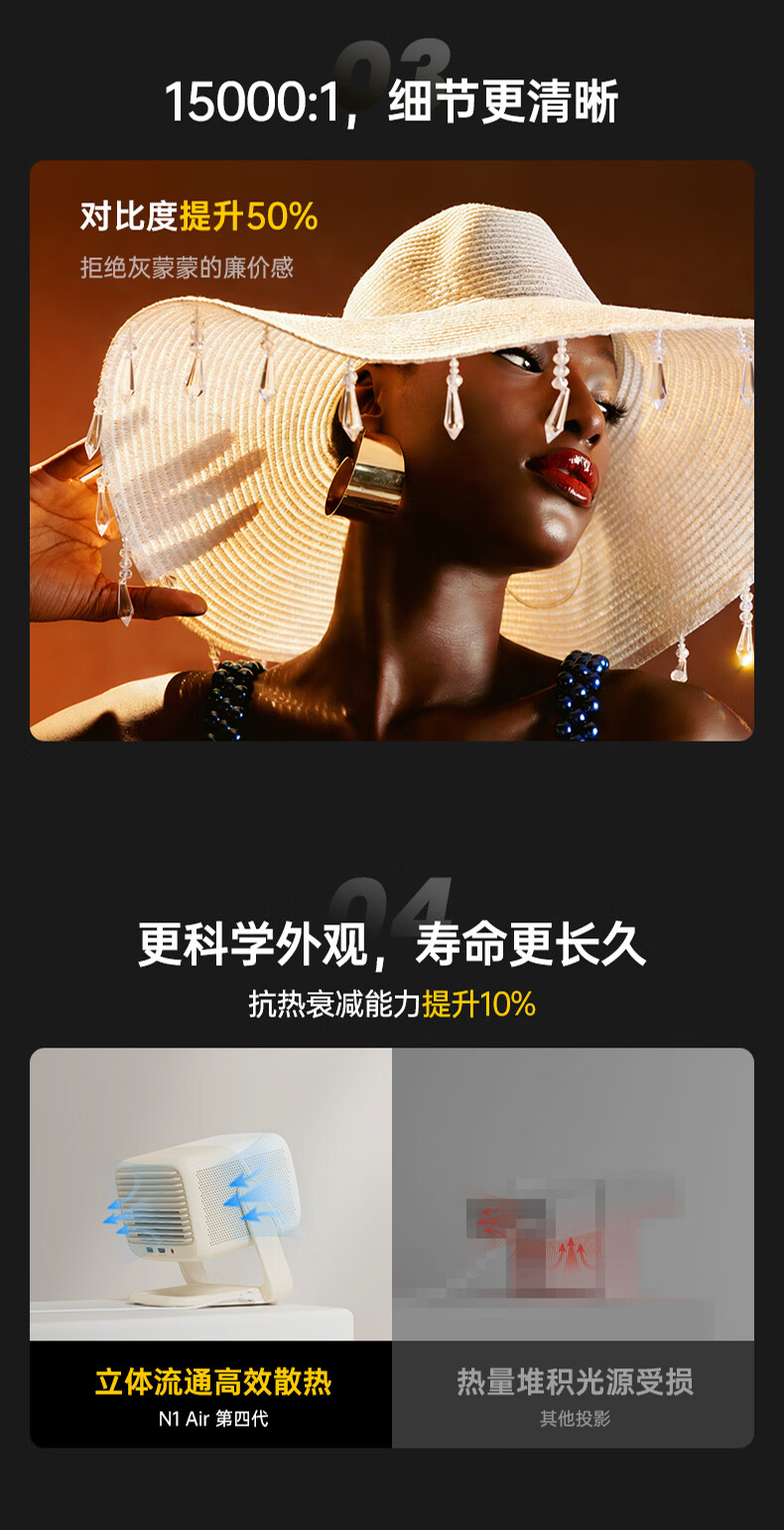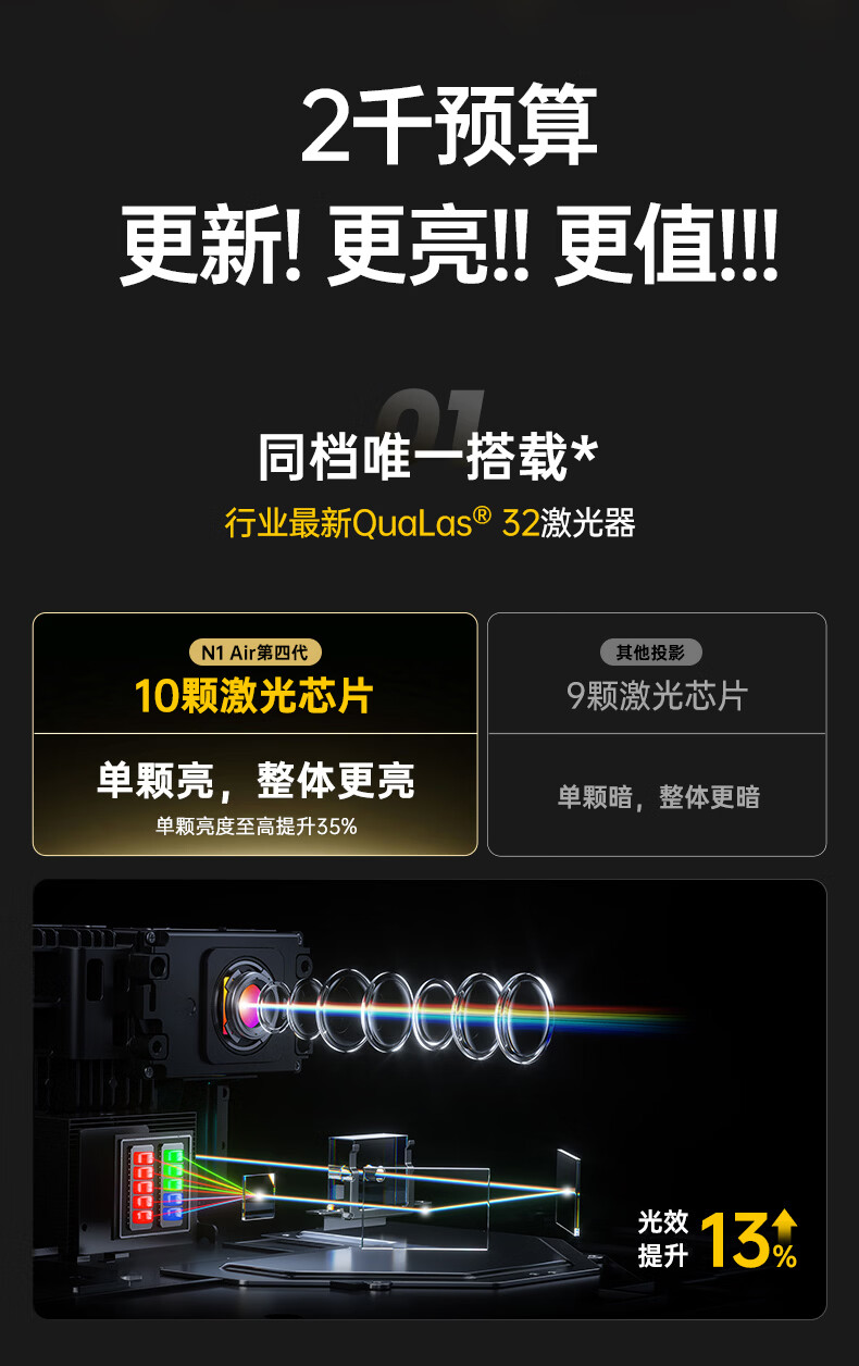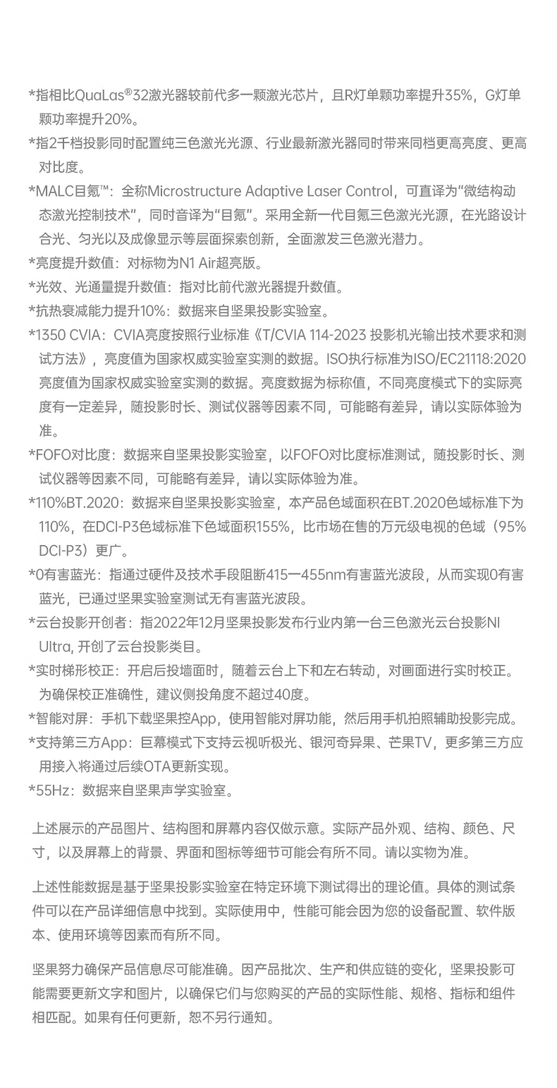 坚果投影(JMGO)N1 Air旗舰版 投影仪家用 纯三色激光高
