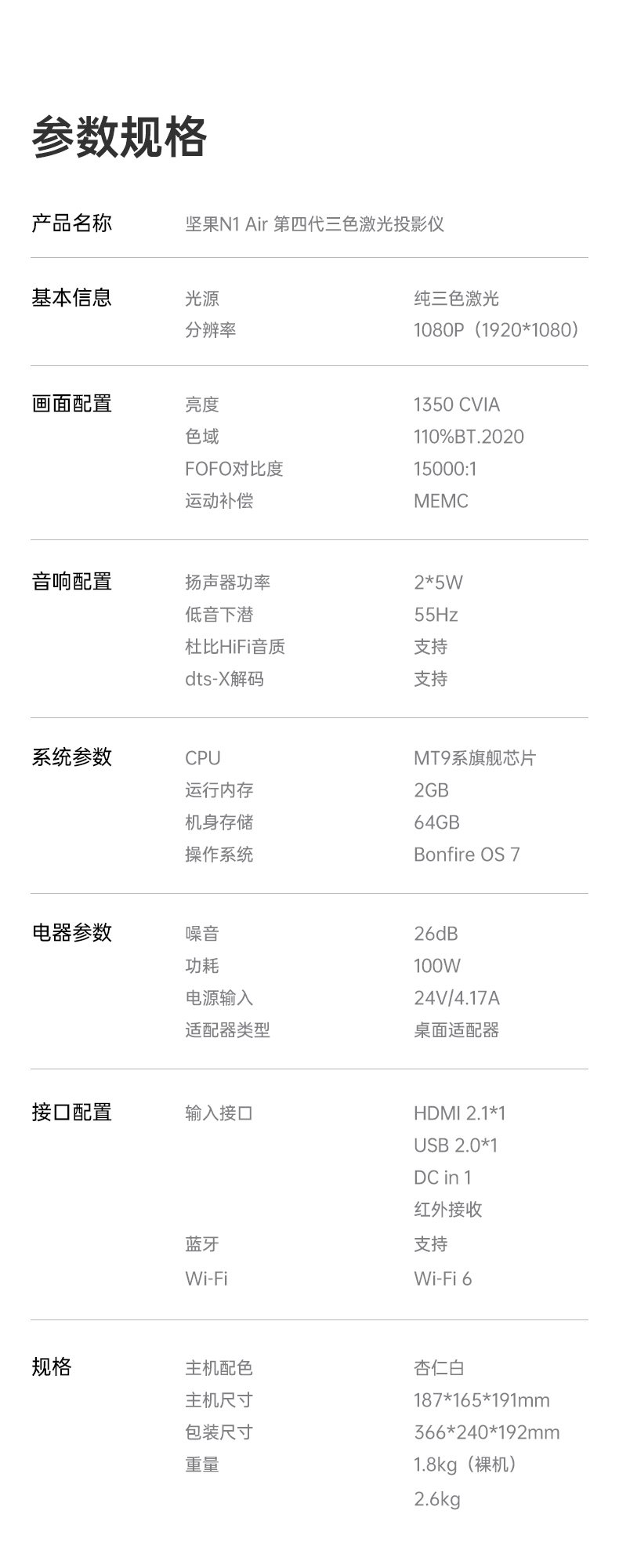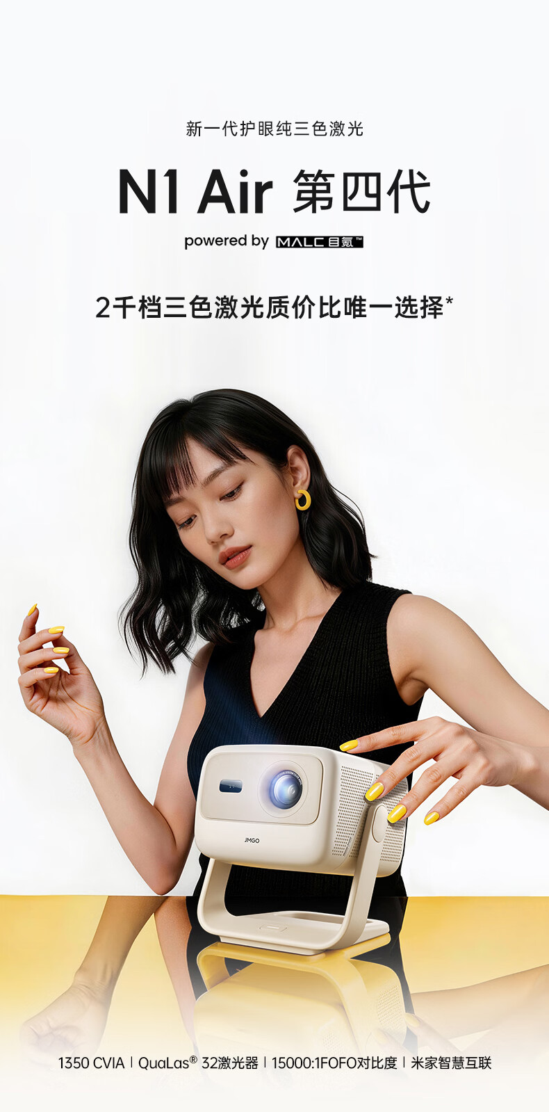 坚果投影(JMGO)N1 Air第四代 投影仪家用 纯三色激光高