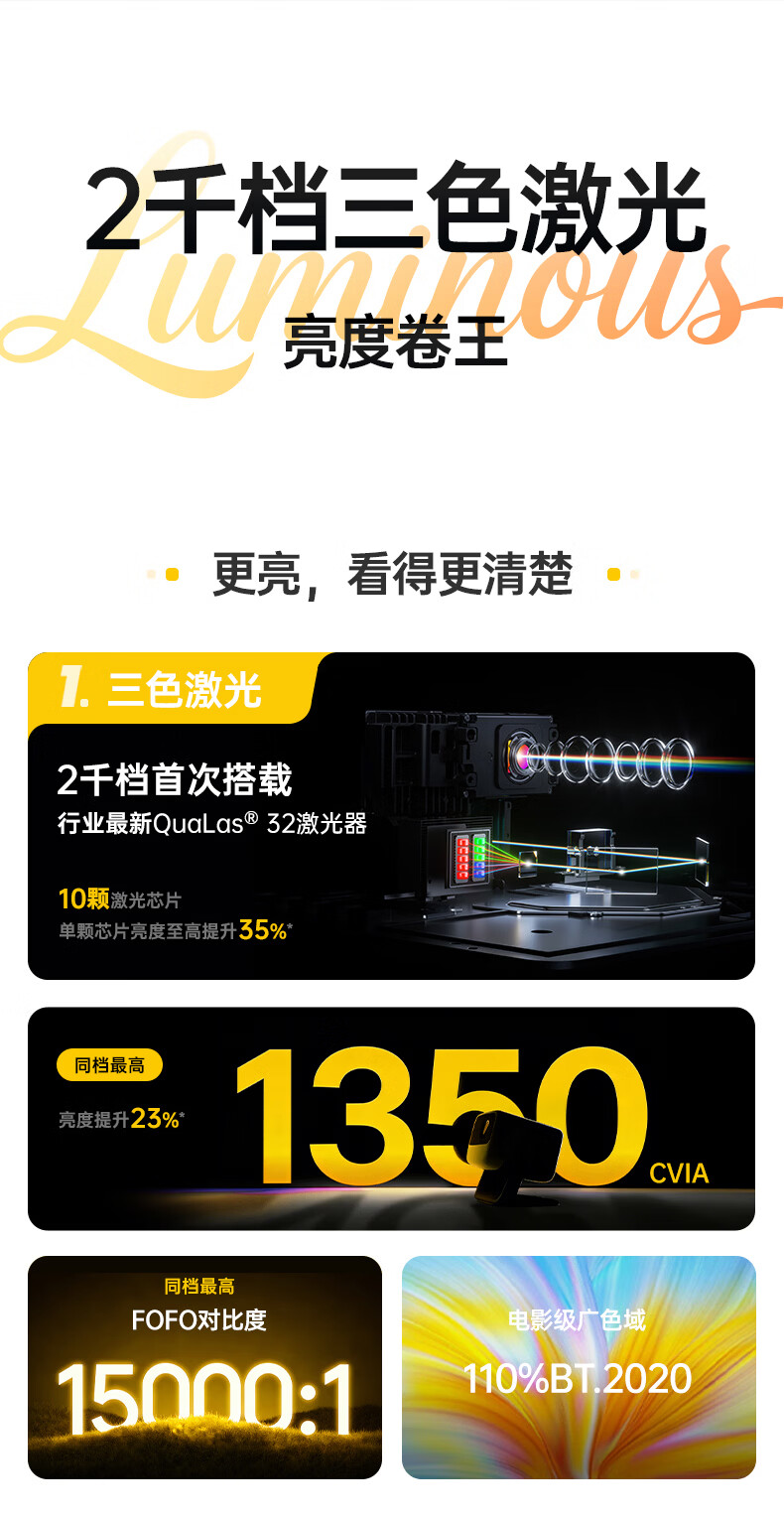 坚果投影(JMGO)N1S 4K特别版 三色激光云台投影仪家用