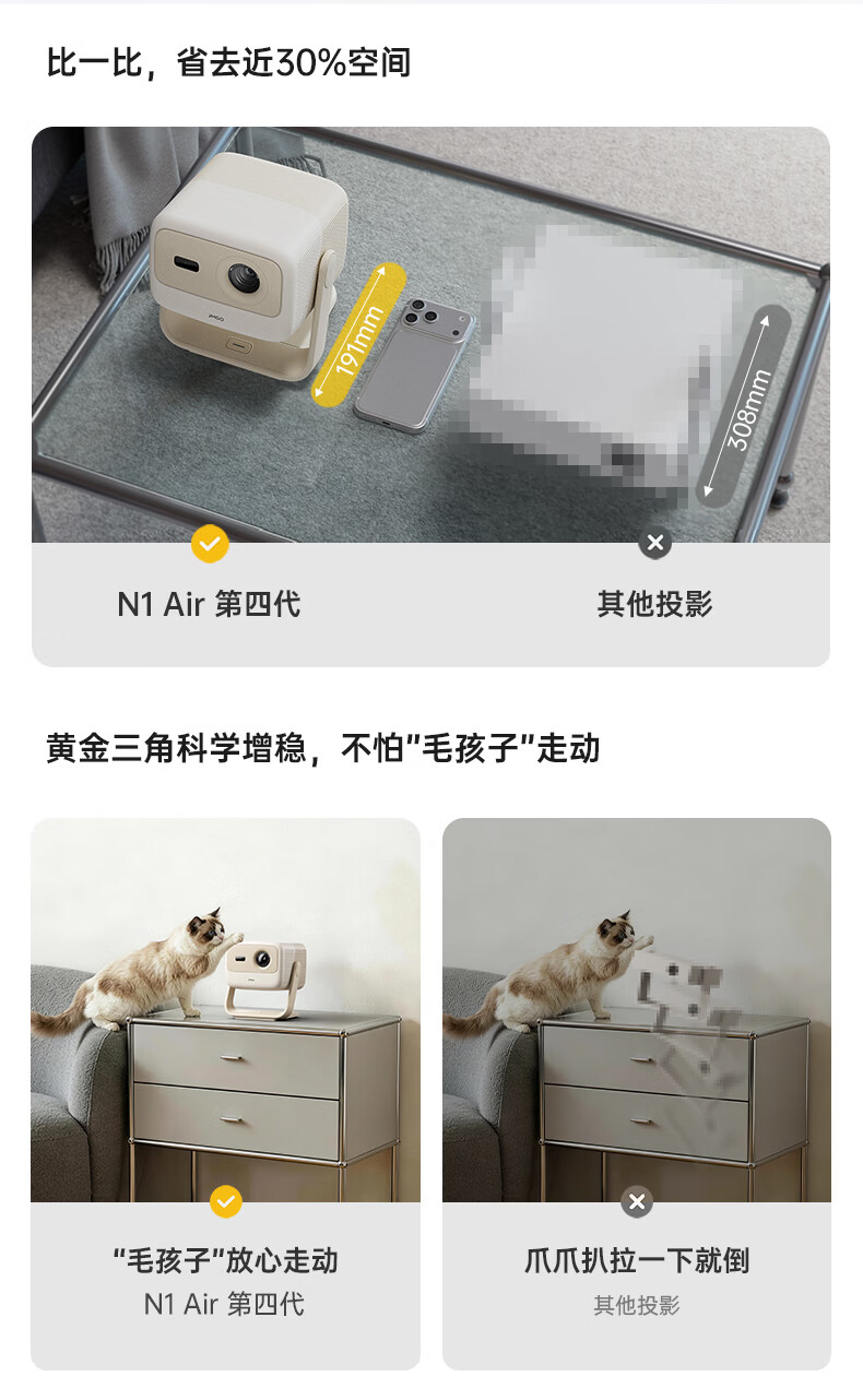 坚果投影(JMGO)N1 Air第四代 投影仪家用 纯三色激光高清超亮 家庭影院云台投影机 (升级1350CVIA)