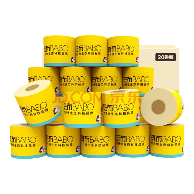 斑布有芯卷纸 4层200g*20卷 本色纸 卫生纸 卷筒纸 纸巾 卷纸 整箱