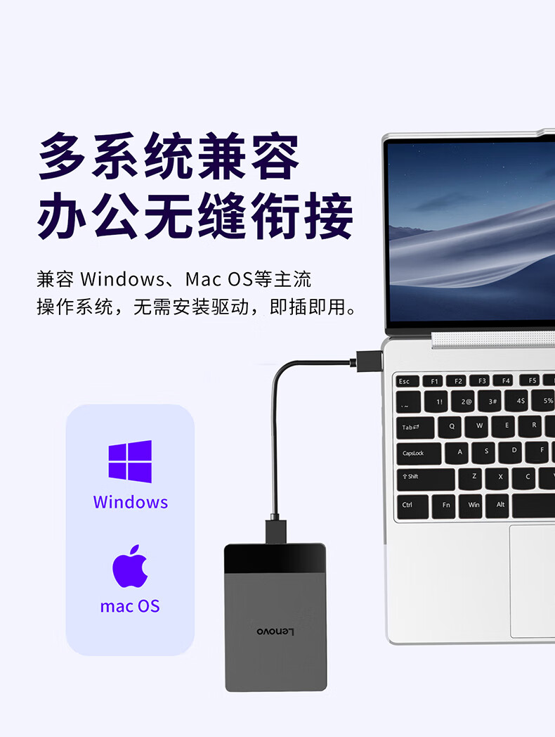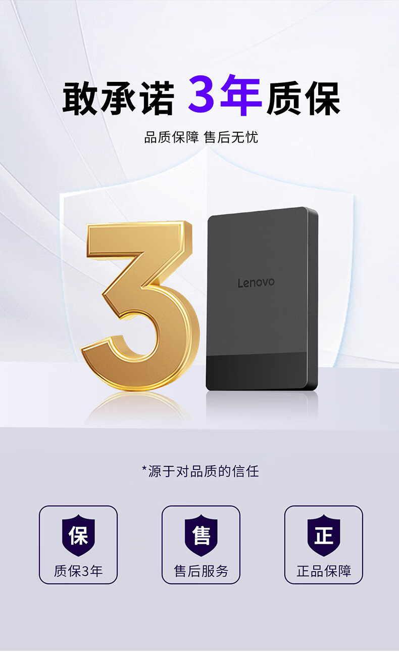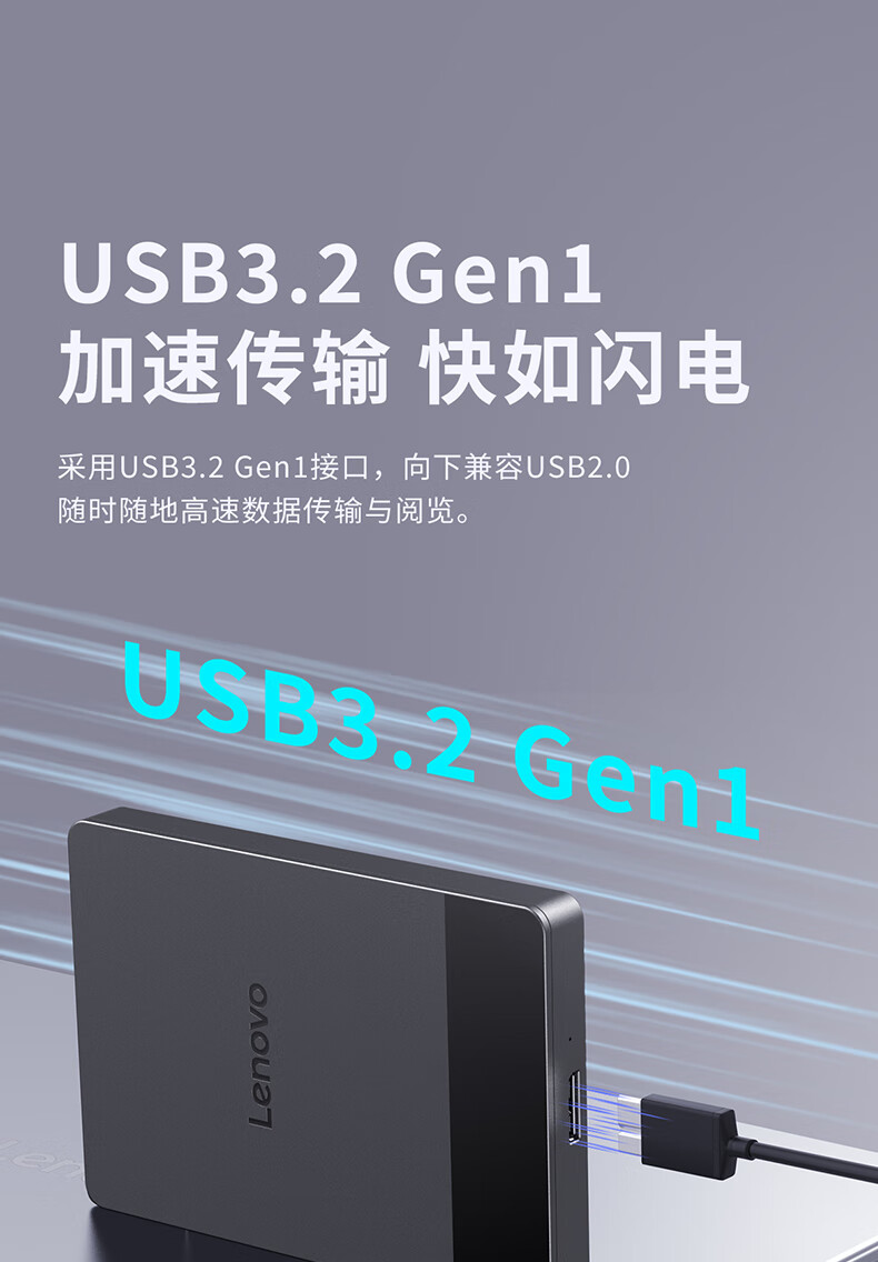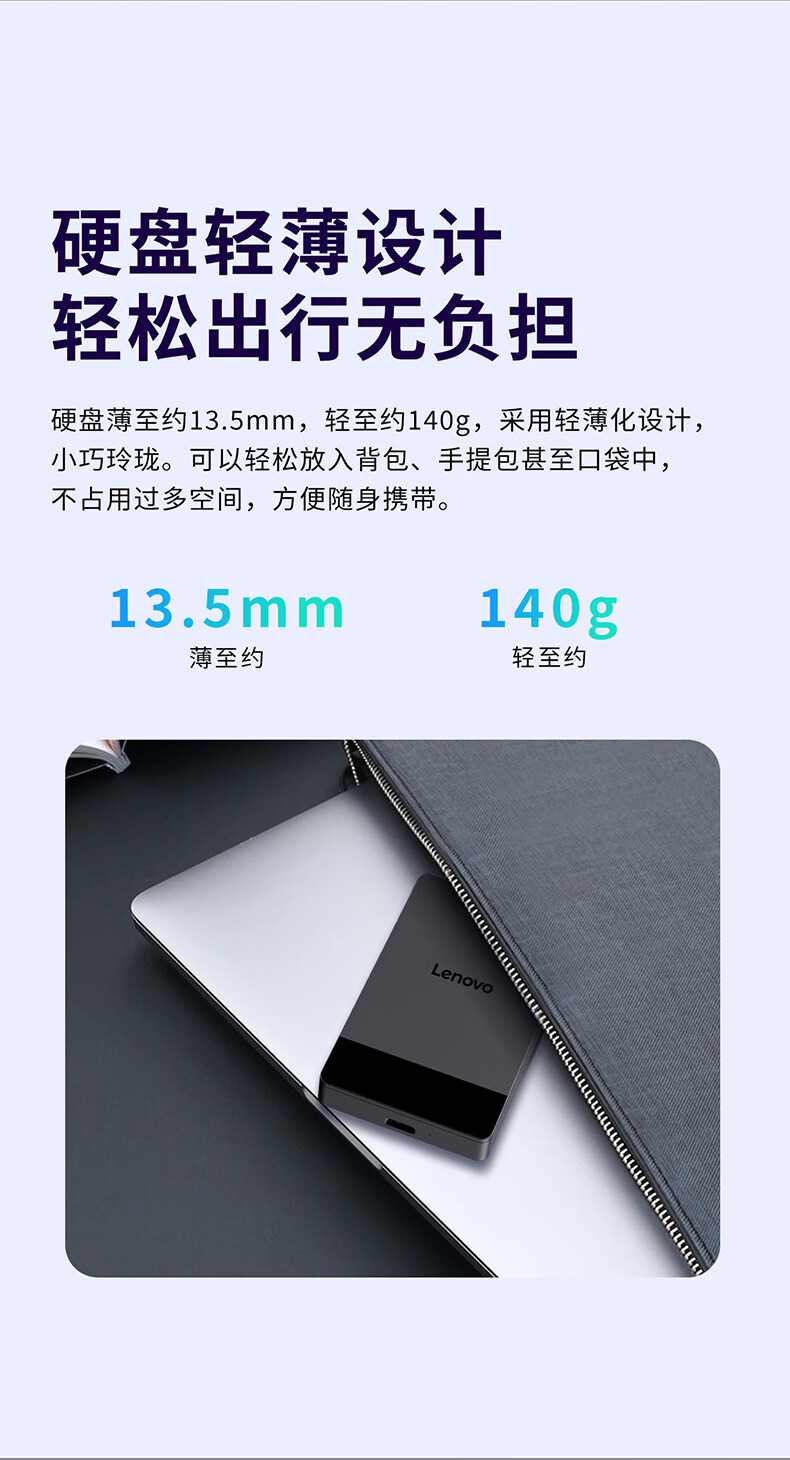 联想(Lenovo)1TB 移动硬盘 USB3.2 2.5英寸 黑色 机械硬盘 高速传输 轻薄便携 稳定耐用F308K